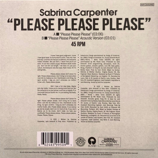 Sabrina Carpenter - Please Please Please (7", Single, Glo)