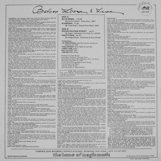 J.R. Monterose / Hugh Brodie - Bebop Loose & Live (LP)