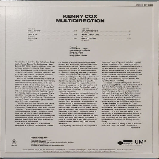 Kenny Cox And The Contemporary Jazz Quintet - Multidirection (LP, Album, RE, RM, 180)