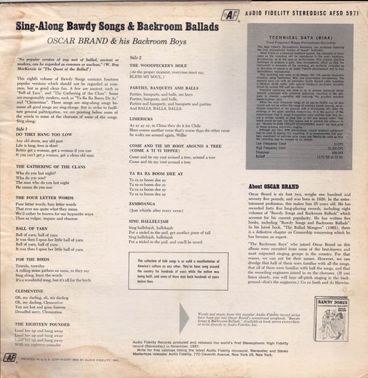 Oscar Brand - Sing-Along Bawdy Songs & Backroom Ballads (LP)