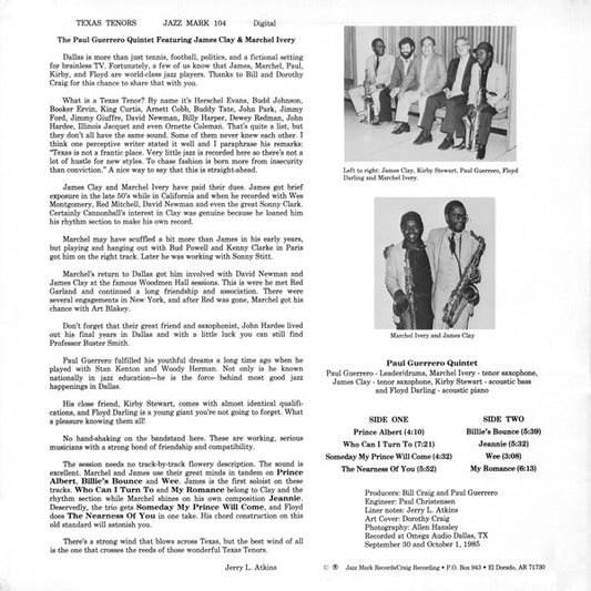 The Paul Guerrero Quintet Featuring Marchel Ivery And James Clay - Texas Tenors (LP)