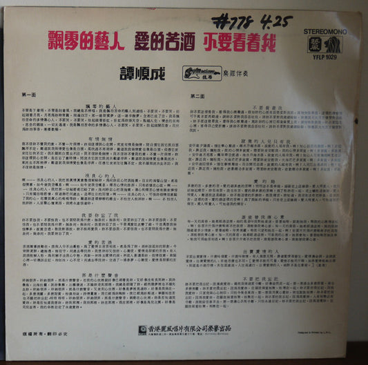 譚順成 - 飄零的藝人 / 愛的苦酒 / 不要看着我 (LP, Album)
