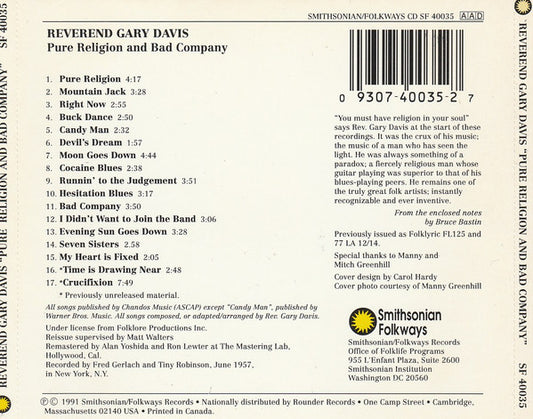 Rev. Gary Davis - Pure Religion And Bad Company (CD, Album, RE)