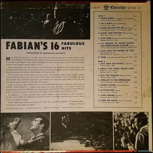 Fabian - Fabian's 16 Fabulous Hits (LP, Album)