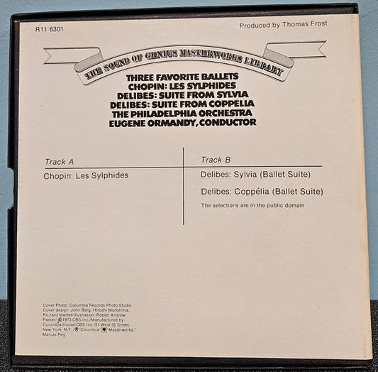 Frédéric Chopin / Léo Delibes - Eugene Ormandy / The Philadelphia Orchestra - Three Favorite Ballets: Les Sylphides / Suite From Sylvia / Suite From Coppélia (Reel, 4tr Stereo, 7" Reel, Comp)