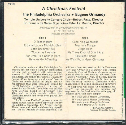 The Philadelphia Orchestra, Eugene Ormandy / The Temple University Choirs, Robert Page / St. Francis De Sales Boychoir - A Christmas Festival (Reel, 4tr Stereo, 7" Reel, Album)