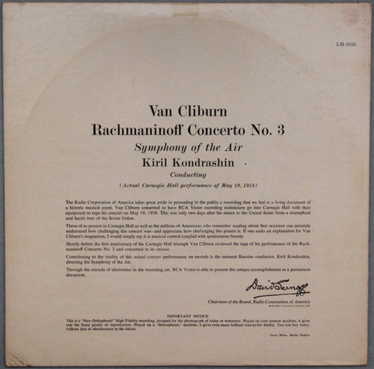 Rachmaninoff* - Van Cliburn, Symphony Of The Air, Kiril Kondrashin - Concerto No. 3 (LP, Album, Mono, Roc)