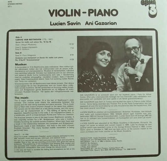 Lucien Savin, Ani Gazarian - Violin - Piano (LP, Album)