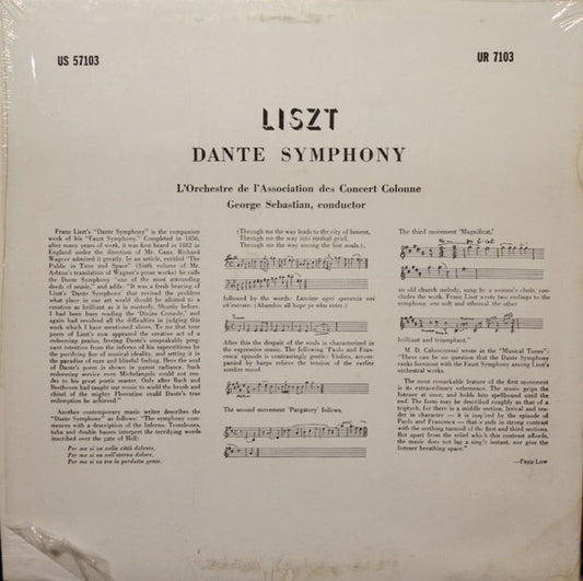 Franz Liszt, L'Orchestre De L'Association Des Concerts Colonne, Georges Sebastian - Dante Symphony (LP)