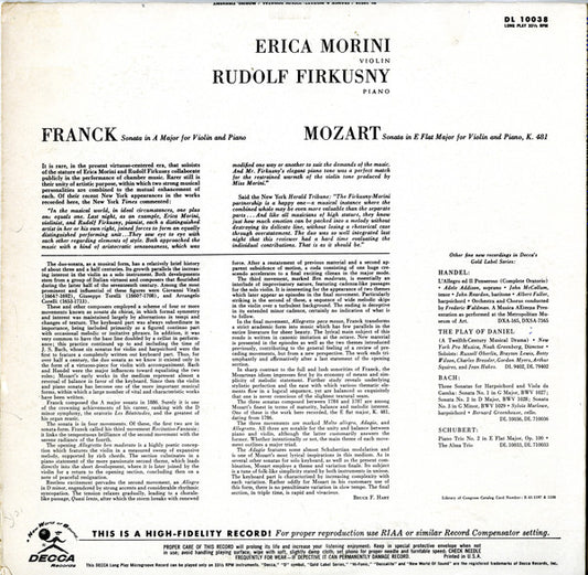 Morini*, Firkusny* - Franck* / Mozart* - Sonata In A Major / Sonata In E Flat Major, K. 481 (LP, Album, Mono)