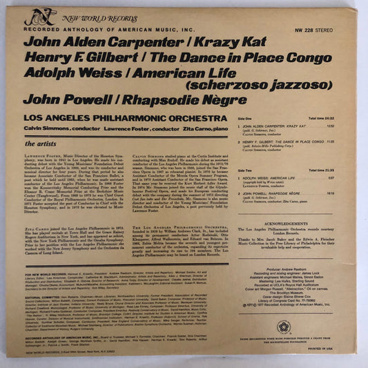 Los Angeles Philharmonic Orchestra, John Alden Carpenter, Henry F. Gilbert, Adolph Weiss, John Powell - Works of Carpenter, Gilbert, Weiss, Powell (LP, Album)