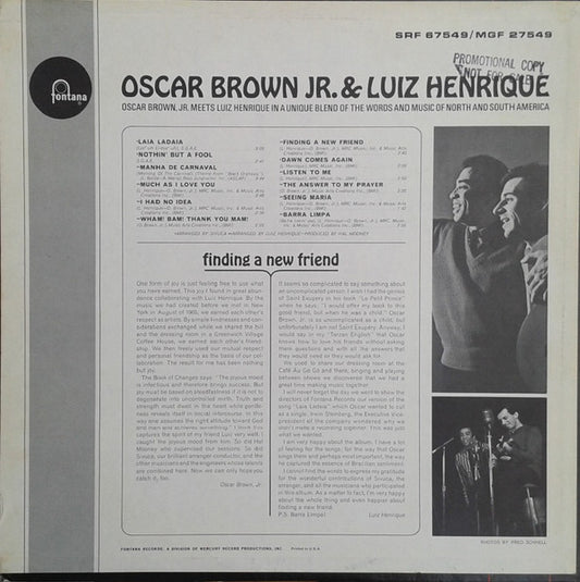 Oscar Brown Jr. & Luiz Henrique - Finding A New Friend (LP, Album, Promo)