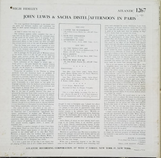 John Lewis & Sacha Distel - Afternoon In Paris (LP, Album, Mono, DG)