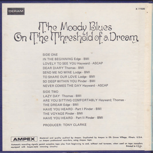 The Moody Blues - On The Threshold Of A Dream (Reel, 4tr Stereo, 7" Reel, Album)
