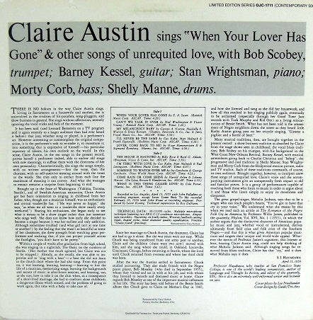 Claire Austin - Claire Austin Sings "When Your Lover Has Gone" (LP, Album, Ltd, RE, RM)
