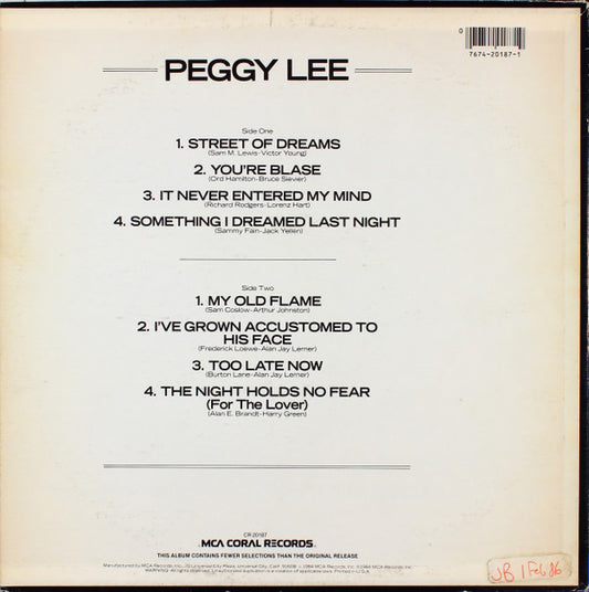 Peggy Lee - Peggy Lee (LP, Album, RE)