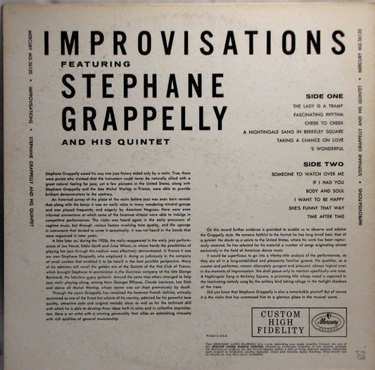 Stéphane Grappelli Quintet - Improvisations (LP, Album, Mono)