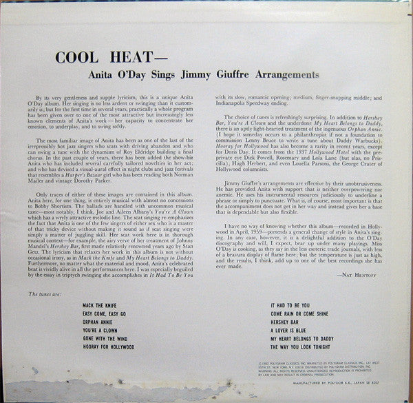 Anita O'Day Sings Arrangements By Jimmy Giuffre - Cool Heat (LP, Album, RE)