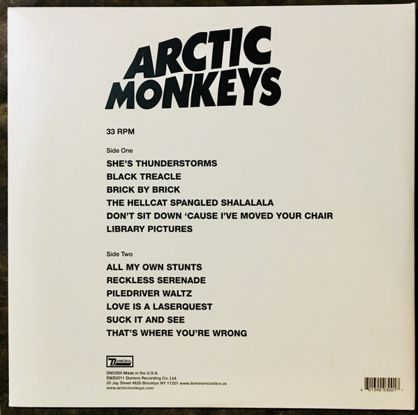 Gatefold sleeve "180GSM Heavyweight Vinyl comes with MP3s" ℗&©2011 Domino Recording Co. Ltd. 20 Jay Street #626 Brooklyn NY 11201 This edition lists the Jay Street / Brooklyn address of Domino - first pressing features the Washington Street / Brooklyn address: [r=2929614.