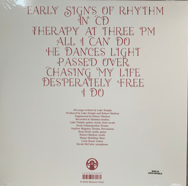 Luke Temple: guitar, synth, lead vocals Kosta Galanopoulos: drums Andrew Maguire: Drums, percussion Rose Droll: synth, piano Robert Shelton: synth Shane McKillop: bass Carly Bond: guitar Nicole McCabe: saxophone All songs written by Luke Temple Produced by Luke Temple and Robert Shelton Engineered by Robert Shelton Recorded at Altamira studios