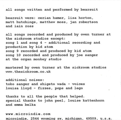 All songs recorded and produced at The Sick Room, Narborough, Norfolk, except 10: recorded at Organ Monkey Studio. Mastered at The Sickroom Studios. Thanks to all the people that helped. Special thanks to John Peel, Louise Kattenhorn and Emma Belka.