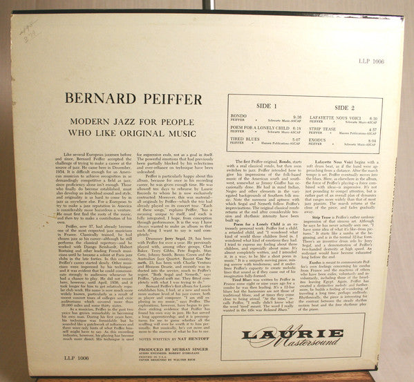 Bernard Peiffer - Modern Jazz For People Who Like Original Music (LP, Album)