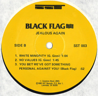 © Cesstone Music (BMI) ℗ 1980 SST Records Cover with barcode and yellow labels are identical to [r=1695833, but the Greg Lee Processing matrix number is different.