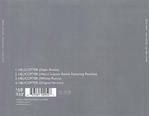 2- Engineered at Poolhouse Studio. Peaches appear courtesy of XL Recordings 3- Track originally appeared on Silent Alarm Remixed (2005) 4- Track originally appeared on Silent Alarm (2004) (P) & (C) 2004 Bloc Party under exclusive license to Wichita Recordings. 'Helicopter' produced at Delta Lab Copenhagen. The original Helicopter mixed at Avatar Studios New York.