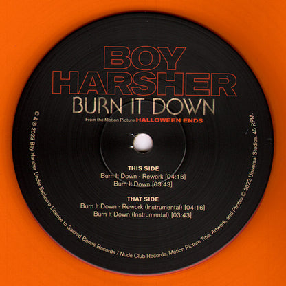 From The Motion Picture 'Halloween Ends' All songs written and recorded between Florence, MA and Bassano Del Grappa, Italy. © & ℗ 2023 Boy Harsher Under Exclusive License to Sacred Bones Records / Nude Club Records. Motion Picture Title, Artwork, and Photos © 2022 Universal Studios. Made in Czech Republic.