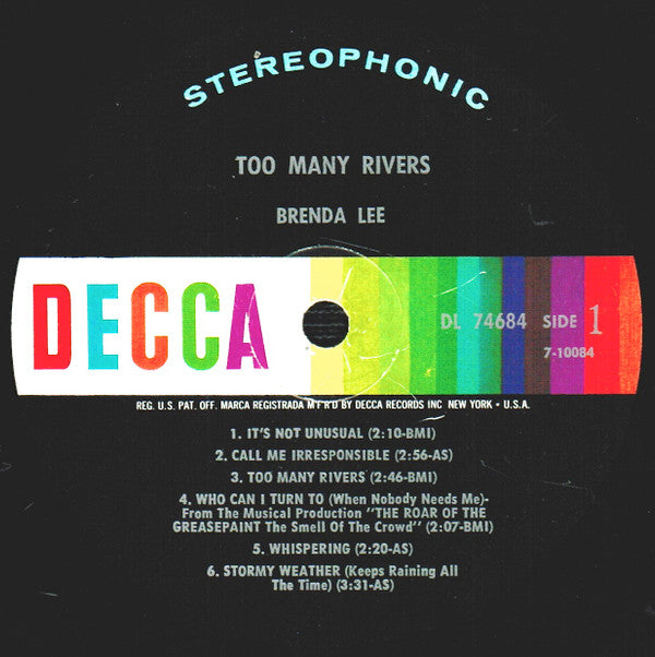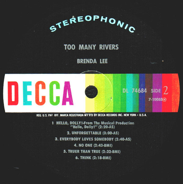 Brenda Lee - Too Many Rivers (LP, Album, Glo)