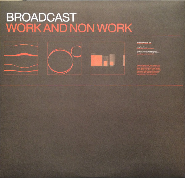 Compilation of band's first three singles/EPs prior to signing with Warp Records. Issued with inner art sleeve. Some have a sticker on shrink: [Sticker Broadcast: Work And Non Work Vinyl Repress includes free download code A1, A5 from "Accidentals/We've Got Time" (Wurlitzer Jukebox WJ6) B1, A4 from "Living Room/Phantom" (Duophonic Super 45s DS45 14) A2, B3, A3, B2 from "The Book Lovers" EP (Duophonic Super 45s DS45 16) Three (A3) & Eight (B3) engineered at Blackwing. Two (A2) engineered at Magic Garden. Six (B1) engineered at Rich Bitch. Seven (B2) engineered at Artisan. Mastered at Porkies. ℗ 1996 Broadcast (1996) Ltd. under exclusive license to Warp Records Ltd. © 1997 Warp Records Ltd. Track durations not listed on release.