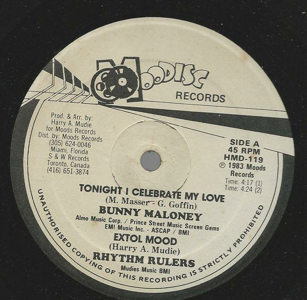 Bunny Maloney, The Rhythm Rulers - Tonight I Celebrate My Love, Extol Mood / Don't Fly Away(Love Bird) (12", EP)