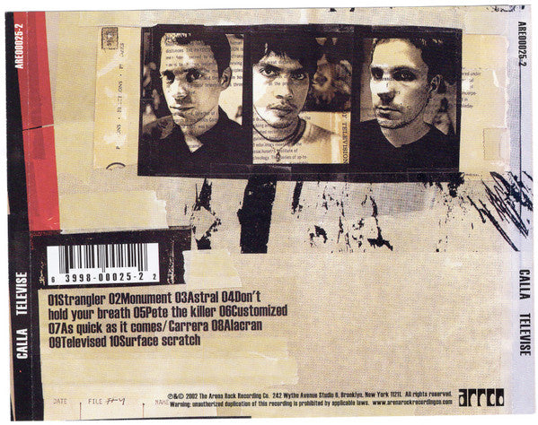 Recorded at Gigantic, New York, Spring 2002. Mastered at Precision Mastering, Los Angeles. ℗ & © 2002 The Arena Rock Recording Co. www.callamusic.com