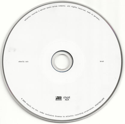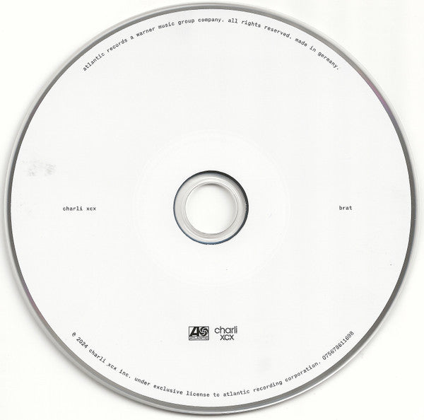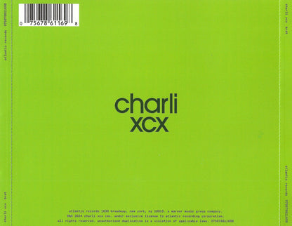 ℗&© 2024 Charli XCX Inc. [CD face & inlay Made in Germany [CD face Issued in a standard jewel case with a clear tray and a 16-page insert booklet containing lyrics and credits. Limited runs on Charli XCX's official webstore included a signed art card.