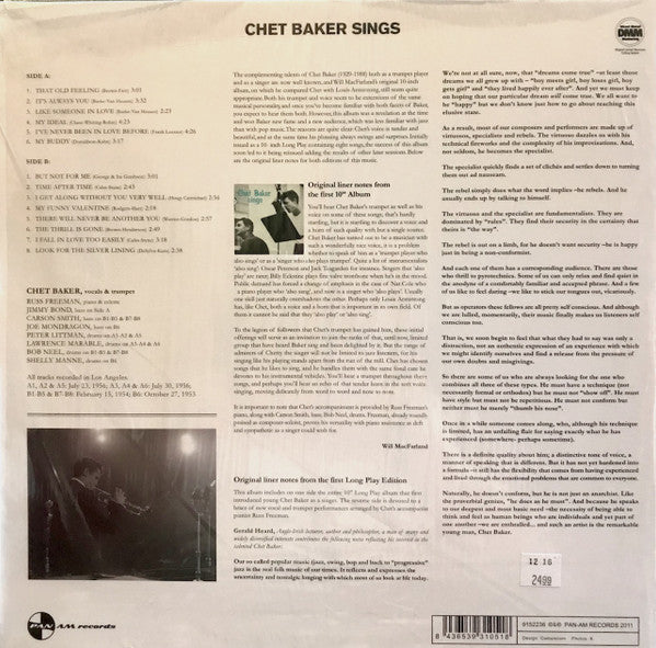 Chet Baker - Chet Baker Sings (LP, Album, Ltd, RE, RM, 180)