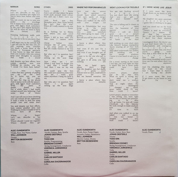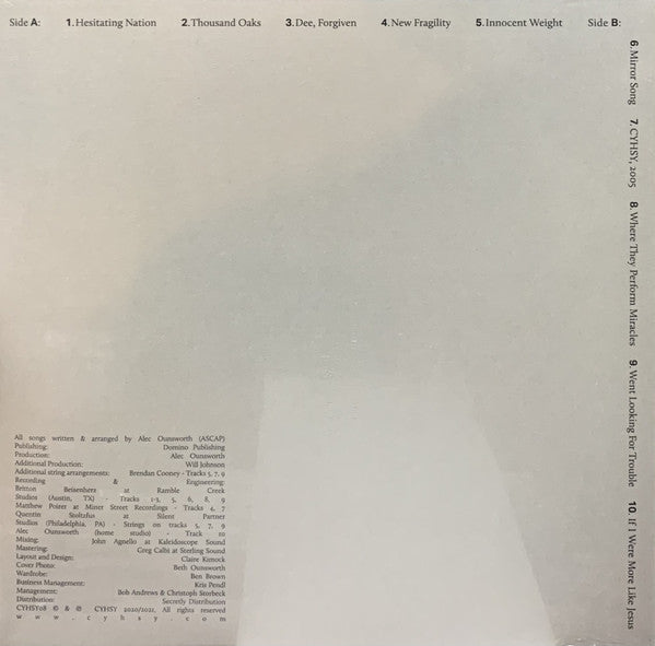Black vinyl version, as indicated via barcode on sticker. Download included. Catalog Number CYHSY08 on spine, CYHSY08LP on sticker. Recording & Engineering: Britton Beisenherz at Ramble Creek Studios (Austin, TX) Matthew Poirer at Miner Street Recordings Quentin Stoltzfus at Silent Partner Studios (Philadelphia, PA) Alec Ounsworth (Home Studio) © & ℗ CYHSY 2020/2021.