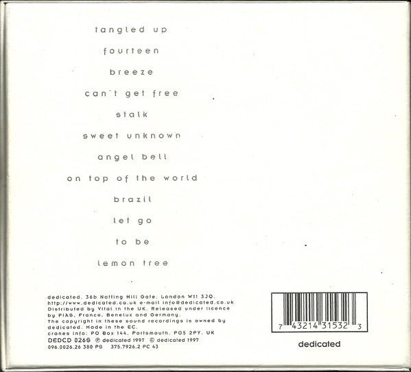 Recorded at Stanbridge Farm, Sussex, May-June 1996, except track 6 recorded at Piercing Sound, Burbank, CA 1995. Mastered at Tape to Tape. Extra track (track 12) is printed as "Lemon Tree" (which appears only on /release/409344"Can't Get Free"), due to a mistake by the recording company. Disc Pac made by London Fancy Box Includes an 8-page glossy booklet. Includes band info mailing card. All tracks A. Shaw, J. Shaw (copyright control) ℗ dedicated 1997 © dedicated 1997 Distributed by Vital in the UK Released under licence by PIAS, France, Benelux and Germany Made in the EC