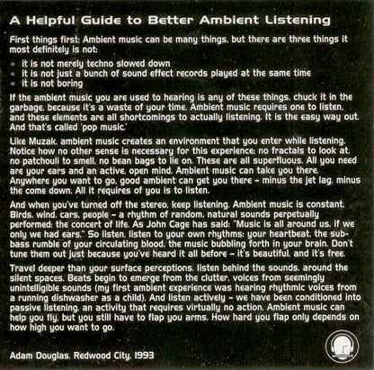 All music conceived, channeled and performed by Adam Douglas except Spaceship Melody which was the result of a collaboration with Darren Cutlip. Recorded at home August 1993. In Germany: Hyperium. SR 9343 ℗ 1993 Silent Records - Made in Canada. Catalog numbers: Spine and matrix: SR9344 Back insert: SR 9343