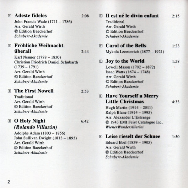 Recording location: MuTh, Kirche St. Leopold. ℗ 2015 Wiener Sängerknaben under exclusive license to Universal Music GmbH. © 2015 Universal Music GmbH. Total time: Includes a 15 page booklet with program notes in English, German and French.