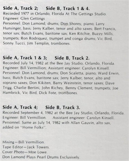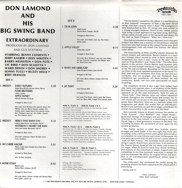 (P) 1982 Progressive Records Inc. (C) 1982 Progressive Records, Inc. Recording dates: Track A2.1 & A2, B1, B4, recorded1977 in Orlando, Florida at The Getting Studios Track A1.1 to A1.3, A3, B2 recoded July 14, 1982 at the Bee Jay Studio, Orlando Florida Track A4, B3 recoded September 4, 1982 at the Bee Jay Studio, Orlando, Florida Tracks A2.1 & A2, B1, B4 mixed in the Glenn Gettings Studio, Orlando, Florida