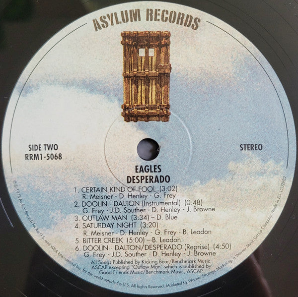 Textured single outer sleeve. Charcoal black, poly lined inner sleeve. Hype sticker with barcode. Recorded at Island Studios, London. Mastered at Grundman Mastering, L.A. All songs published by Kicking Bear/Benchmark Music, ASCAP excepting of "Outlaw Man" which is published by Good Friends Music / Benchmark Music ASCAP. ℗ © 1973 Asylum Records for the U.S. and WEA International Inc. for the world outside the U.S. On back cover: Marketed by Rhino Entertainment Company, a Warner Music Group Company. Made in the Netherlands On center labels: Marketed by Warner Strategic Marketing, a Warner Music Group Company. Made in EU.