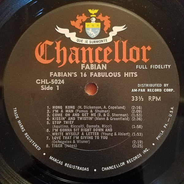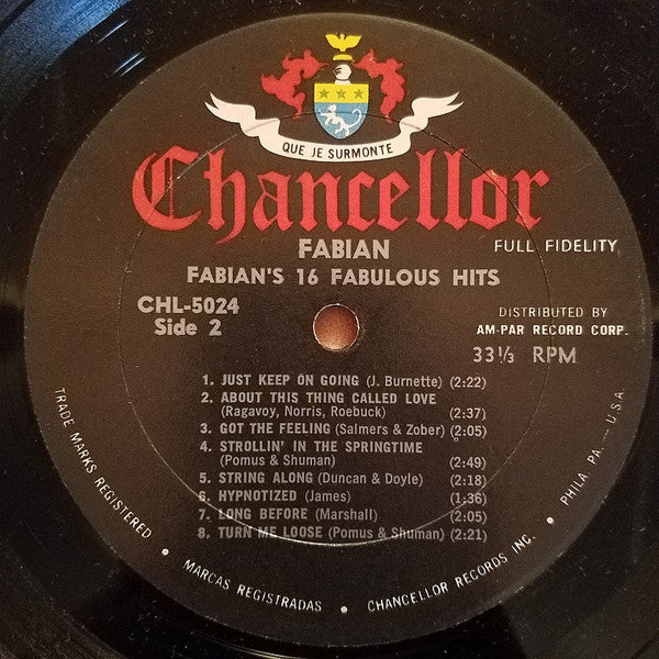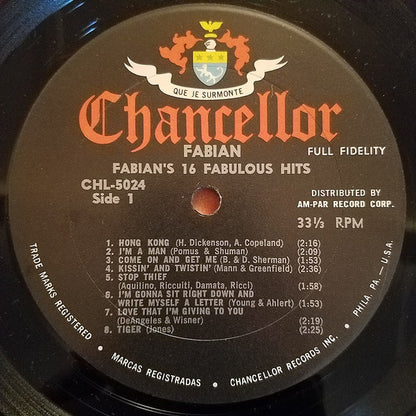 Fabian - Fabian's 16 Fabulous Hits (LP, Album)