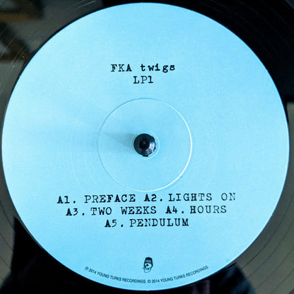 Standard weight LP and sleeve. No download code. Clear "FKA twigs LP1" sticker on shrink wrap. ℗ and © Young Turks Recordings 2014