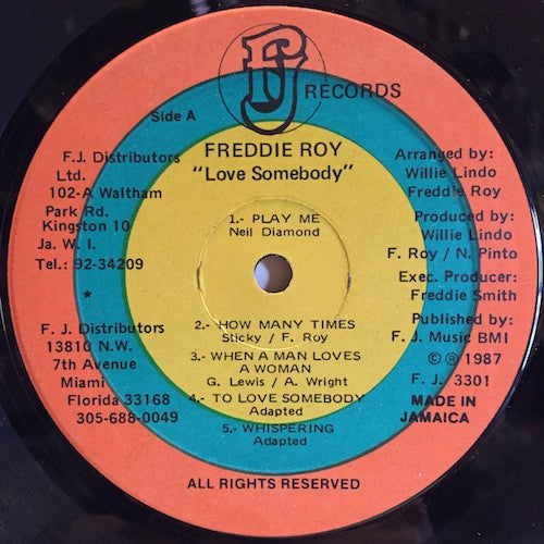 Made in Jamaica, distributed by F. J. Records, USA, Jacket made in Canada