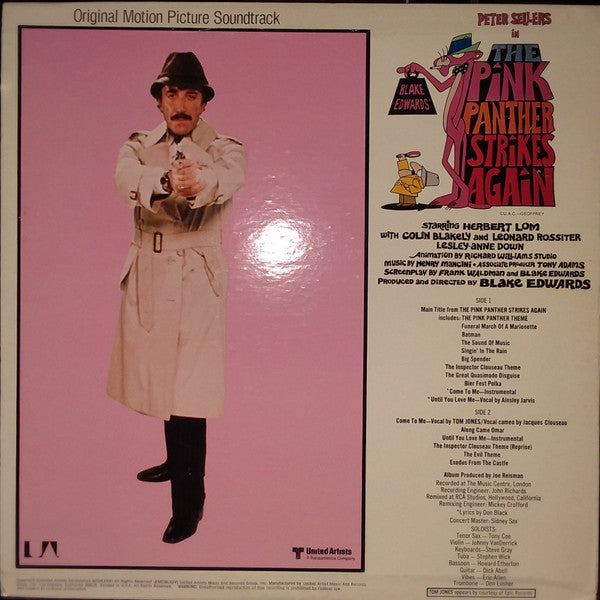 [a283300 in "The Pink Panther Strikes Again" starring Herbert Lom with [a1870150 and [a3031872, [a2954869. Animation by Richard Williams Studio. Music By Henry Mancini - Associate Producer Tony Adams. Screenplay by Frank Waldman and Blake Edwards. Produced and directed by [a1730558. Recorded at The Music Centre, London. Remixed at RCA Studios, Hollywood, California. Tom Jones appears by courtesy of Epic Records. United Artists - A Transamerica Company.