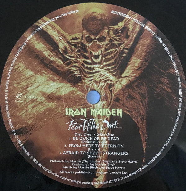 2017 vinyl release of the 2015 remaster of fear of the dark. Black vinyl, 180 gram. Identical to [r10307565 but with a different bar code.