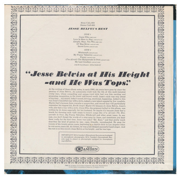 Jesse Belvin - Jesse Belvin's Best (LP, Comp)
