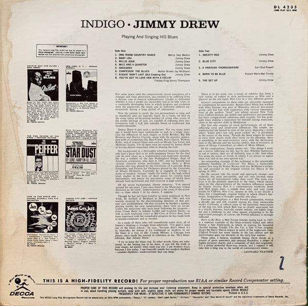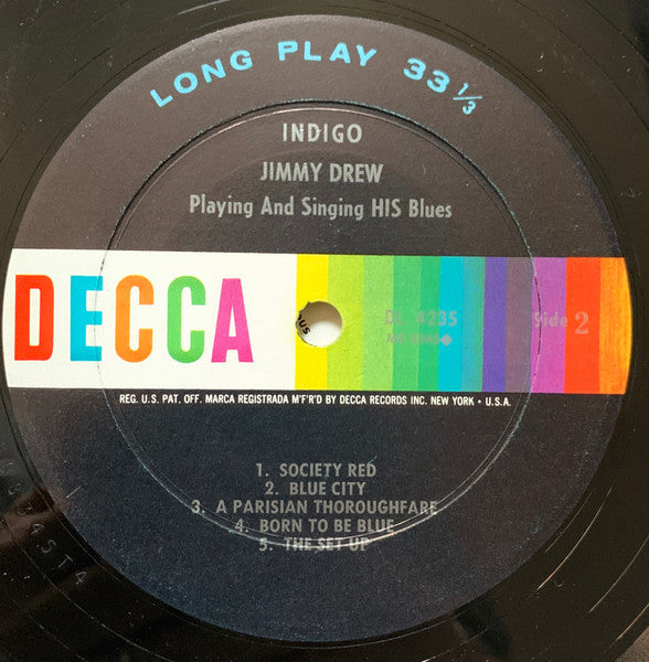 Jimmy Drew - Indigo (LP, Album, Mono, Pin)