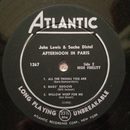 John Lewis & Sacha Distel - Afternoon In Paris (LP, Album, Mono, DG)