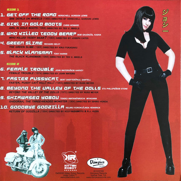 From hype sticker: "Songs from your favorite exploitation films taken to a new level by Josie Cotton & All-Star Band! Includes free digital download coupon!"
